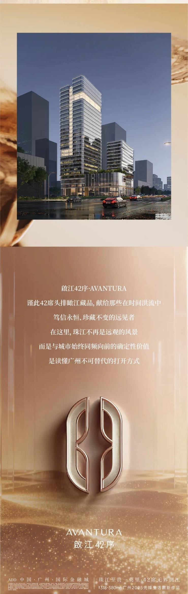 啟江 42 序(Avantura)是广州尚品宅配家居股份有限公司深耕高端定制领域 27 年后,落子国际金融城的先锋生活启新作品。项目以 “逐新品位” 为核心理念,选址金融城东区起点位,占据珠江 “至贵 1 英里” 临江岸带 —— 这片约 8 平方公里的国家级战略区域中,仅 0.3% 土地留存为一线亲江生活用地,而啟江 42 序正是此稀缺板块内最后一块可售南向亲江住宅项目,专为 42 位卓尔不凡的塔尖人士量身定制,重新定义粤港澳大湾区顶奢生活标准。