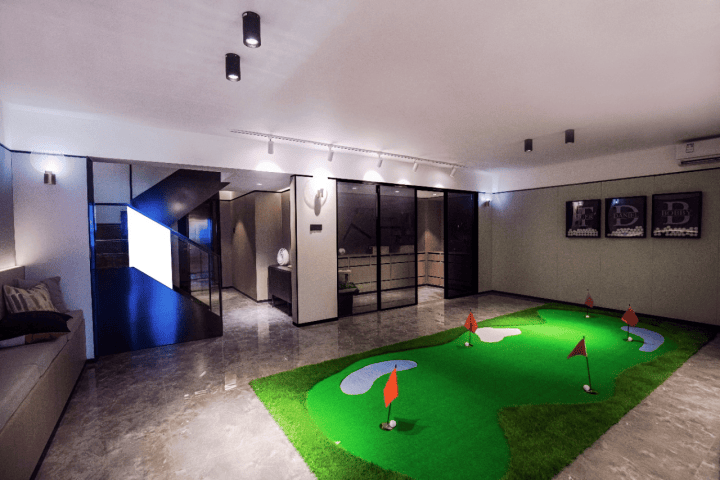 一层北向约35㎡花园及一间会客厅,四层餐客厅厨房及1间卧室,三层是休息区共有3间卧室。