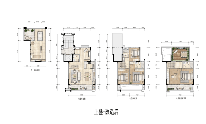 上叠共4层,地上六、七、八层,地下一层。