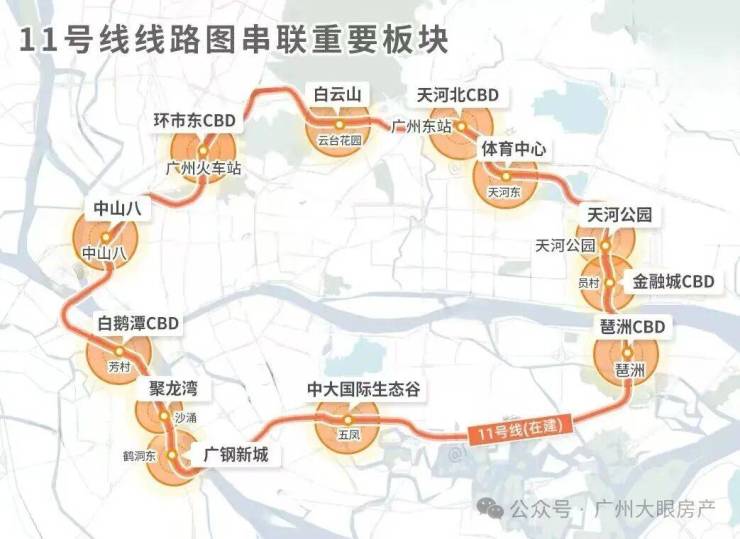 11号线是广州第一条的超级环线,市中心的“换乘之王”,直接圈定城市价值的“地段一环”。
