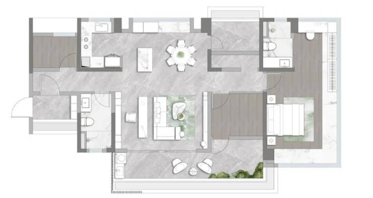 海珠唯一 内外双花园项目,原址保留2棵原生古榕树,打造约2000㎡的月牙形榕树公园前厅。形成9000㎡内外双花园,隐于自然,归家即特权。