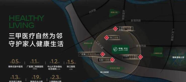 3km范围内3所三甲级医院,包括南方医科大学珠江医院、广州医科大学附属第二医院、中山大学孙逸仙纪念医院,24小时为业主的健康保驾护航。