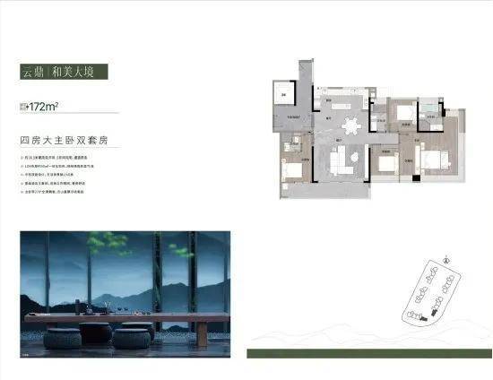 在产品打造上,项目采用公建化立面设计,通过客厅的宽大观景阳台和房间无柱全景观面飘窗台,视野开阔,实现0遮挡山景入户,使业主能与云山亲密接触。