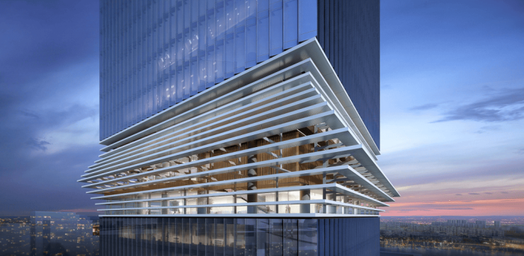 在外立面上,大面积铺设性能出色、造价高昂的LOW-E半钢化中空节能玻璃,而这种玻璃环幕,从来都是全球顶级写字楼的“主力外衣”。