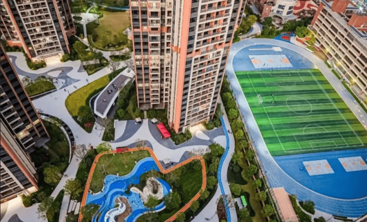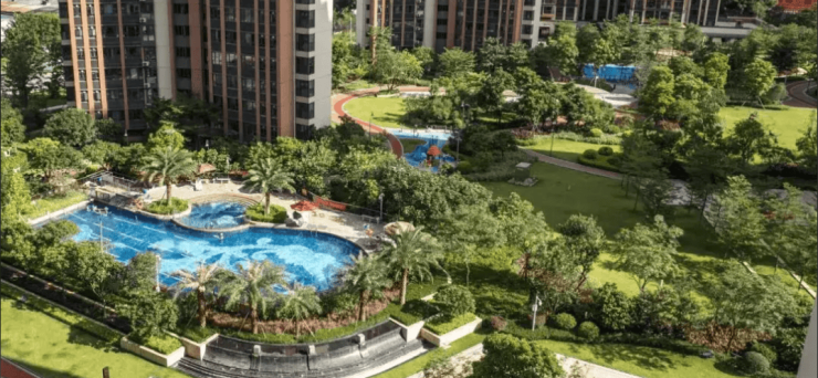 规划了约 10 万平方米的珠江四季花园园林,超百米的楼距让采光和私密性都有保障