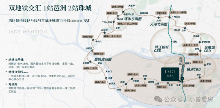 项目占据核心主干道,约15分钟车程内即可到达琶洲、珠江新城、国际金融城三大核心CBD。