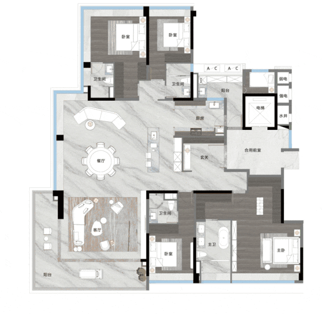 户型面积:140㎡/190㎡四房,250㎡4+1房