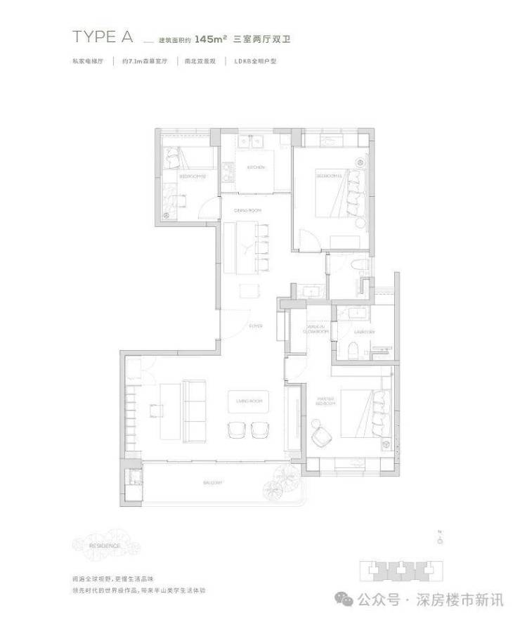 【145㎡户型】独享私家电梯厅-约7.2m²森幕宽厅-LDKB全明户型