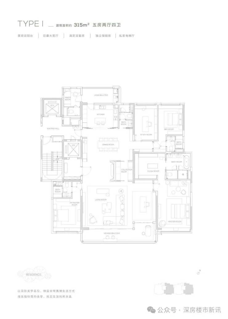 【315㎡户型】南北双阳台-独立保姆房-巨幕大宽厅-私家电梯厅
