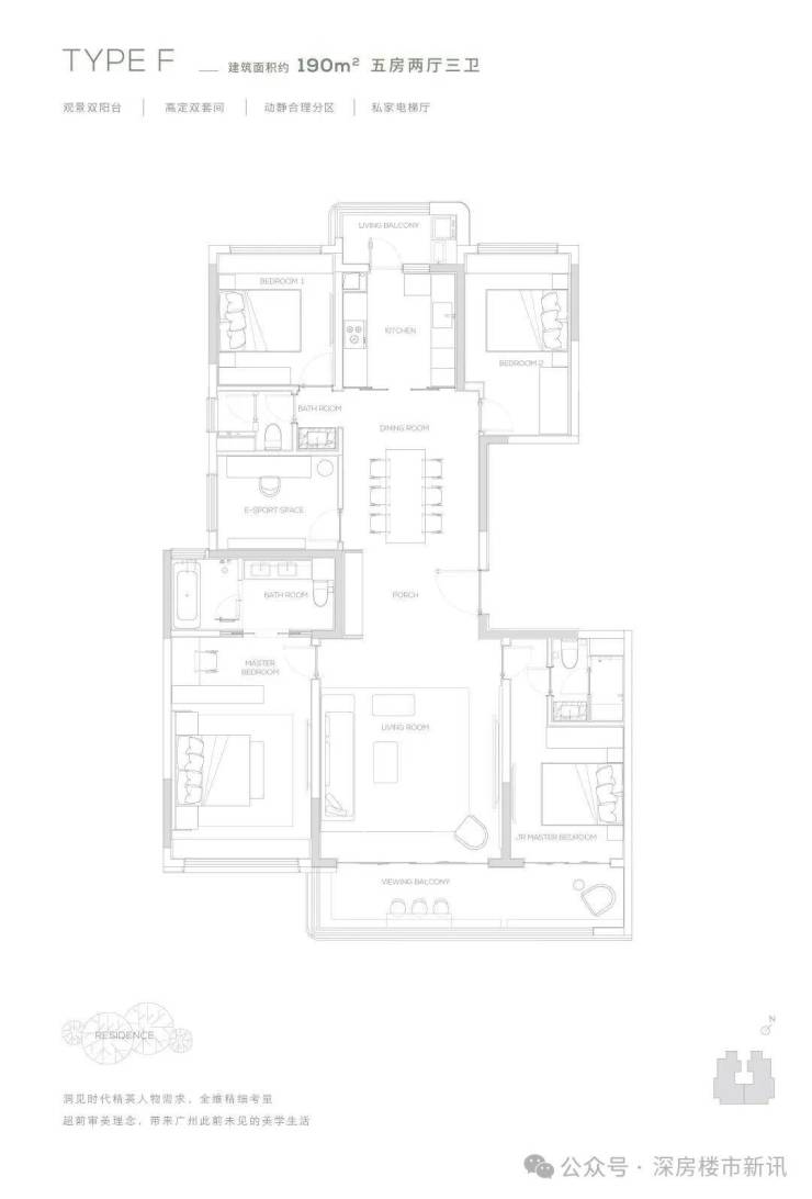 【190㎡双阳台户型】观景双阳台-高定双套间-私家电梯厅-双洄游动线