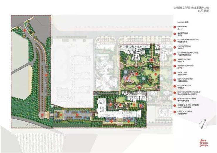 -人群活动密集区域的植栽设计以自然式布局为主,显得清新而开阔