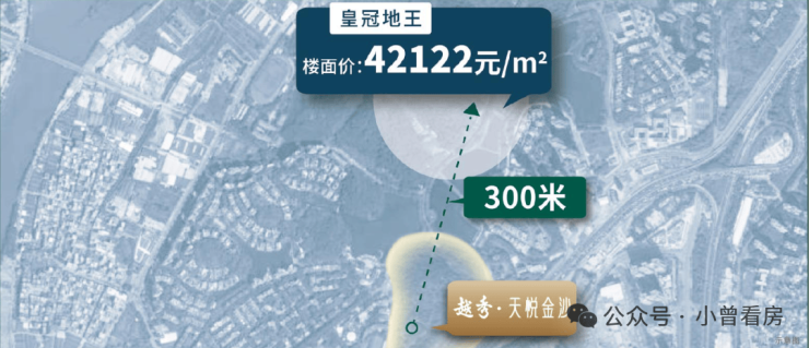 项目约300米处的皇冠地块,以42,122元/m2的楼面价被重金拿下,一举成为金沙洲价值地块。