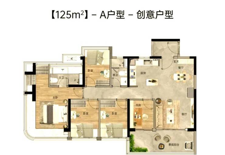 改善型家庭可选 125㎡户型,位于 4 号楼,2 梯 3 户设计,南向直接看山景,主卧还有 270° 转角 U 型景观面,空间宽敞又通透。所有户型实用率都超过 110%,梯户比最高才 2 梯 5 户,居住密度不会太拥挤。