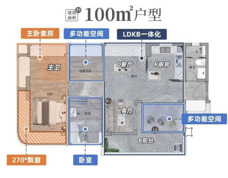 96㎡户型货量最多,相当于 80㎡的升级版,入户多了一个卧室,阳台长达 5.7 米,景观视野更开阔。
