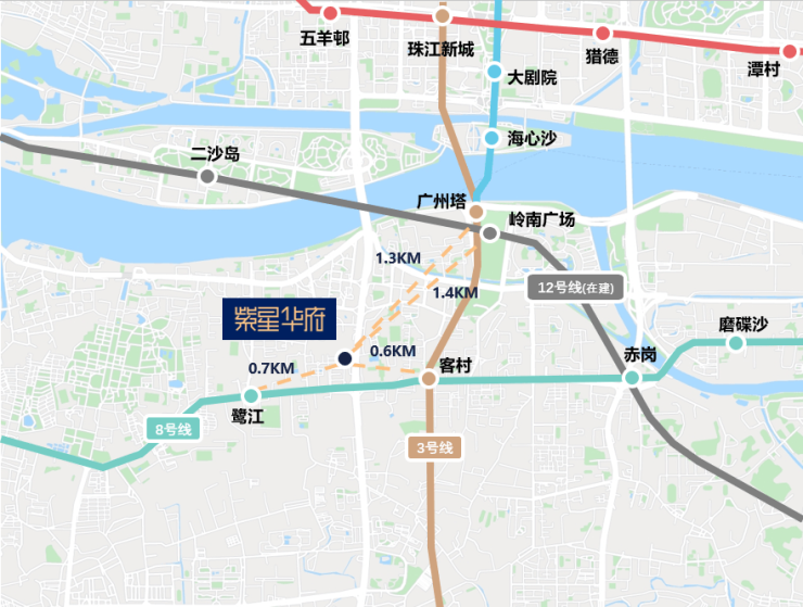 紫星华府位于广州城市中轴线与珠江横轴的交汇圈,广州大道南客村立交旁,毗邻广州塔,与珠江新城CBD、海心沙市民广场隔江相望。