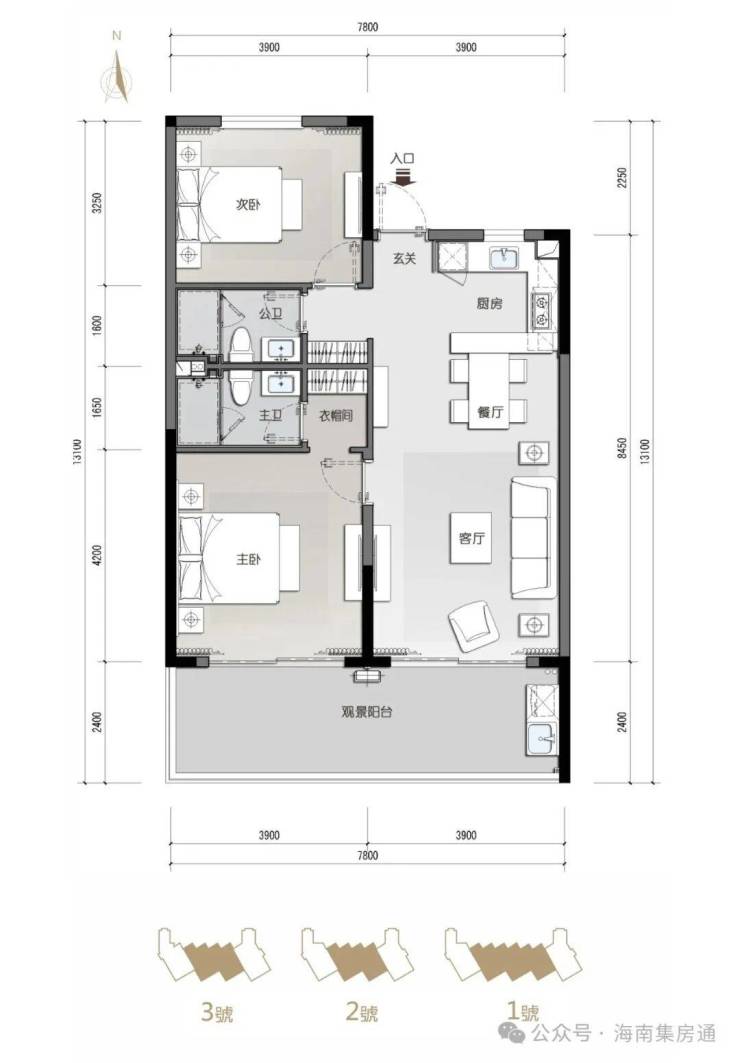 3栋低密纯板高层建筑,一字布局,户户坐北朝南,皆享20㎡超大观景阳台180°瞰海观山的极致视觉,海天山色尽收眼底。1.35绝版超低容积率只为成就223席高端舒适的完美胜境。