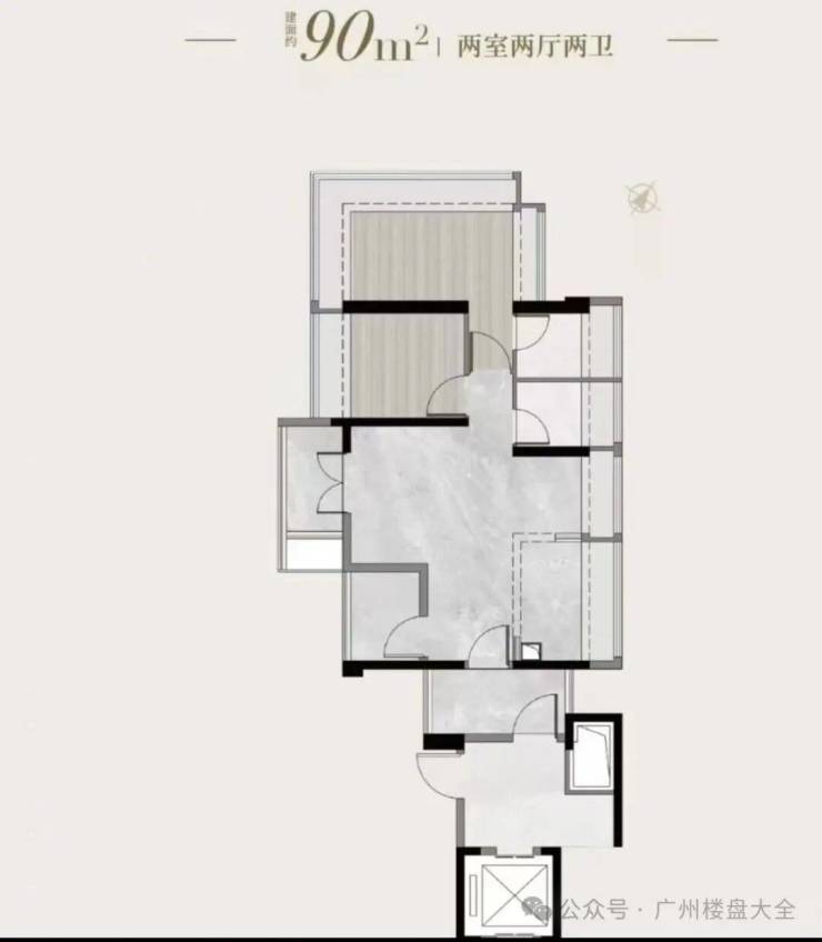 1、01东边位:90㎡竖厅三房,东南向