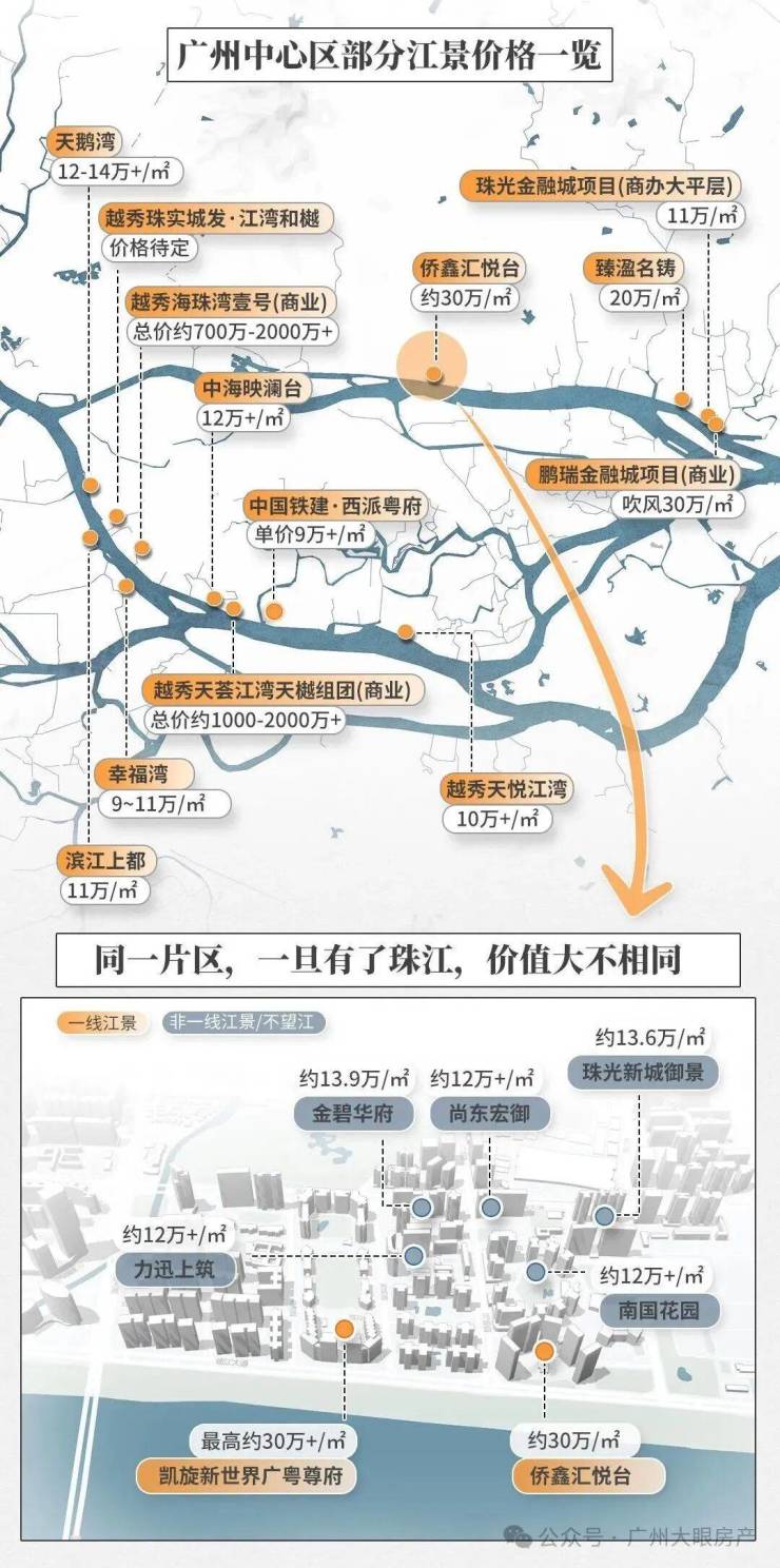 纵观珠江两岸的豪宅,每一个项目都拿“江景”做文章,从初代富人区滨江东,到二沙岛,再到珠江新城,再到新贵琶洲、创新湾,无一不是有江景加持的。