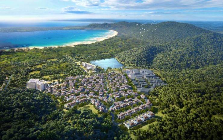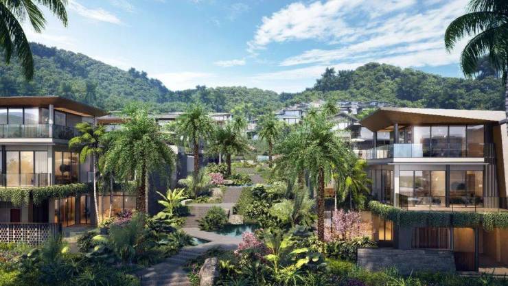 新湖·海棠春晓位于海棠湾南片,铁炉港内海西岸,白石岭万亩热带雨林环抱,内含蓝月湖(原高村水库),海洋、森林、山峦、湖泊在此一望尽收。园区建筑依约60米自然地势高差精妙排布,确保每一席墅品或傍山、或观湖、或瞰海……