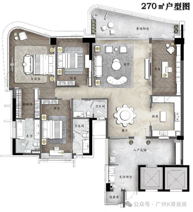 ⑥星级主卧套房,配备衣帽间及四分离卫生间。