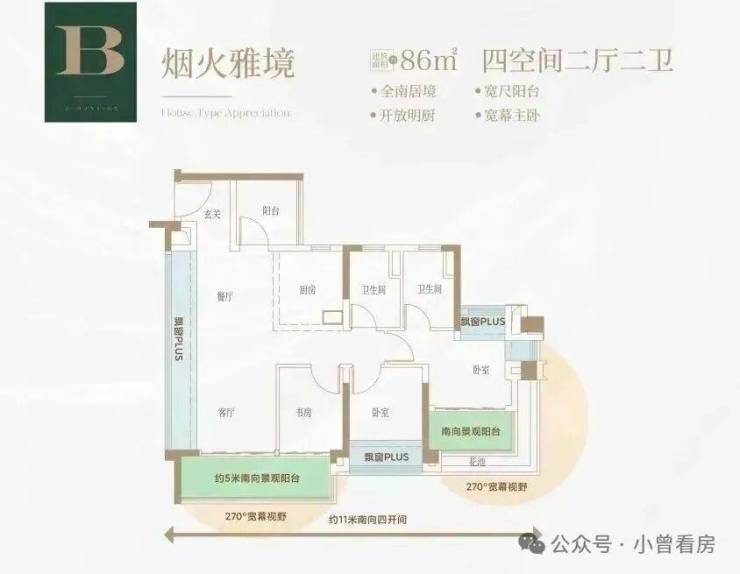 建面约86㎡园景四空间,比同等面积多享一间“房”,拥有比肩约110㎡的宽敞感与高舒适度布局。
