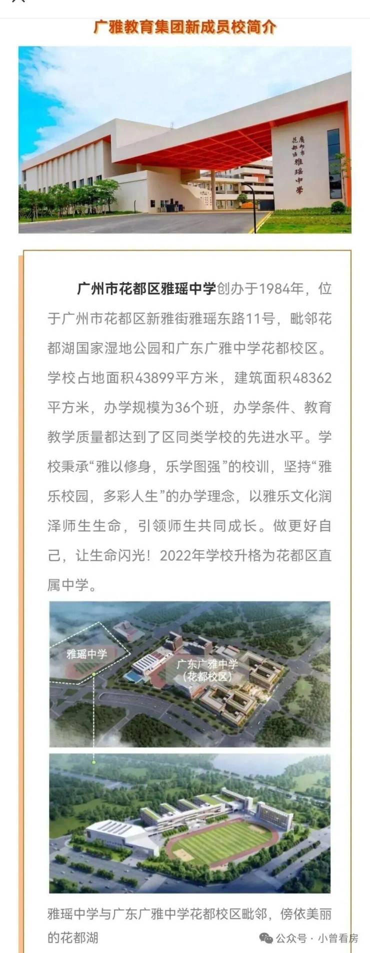 社区配建幼儿园,项目南面紧临品质小学教育用地,规划有36班花雅小学,现在拟纳入广东广雅教育集团管理,等待签约当中,主要是开学的时间,肯定是要等第一批业主收楼之后才开,最快要两年后