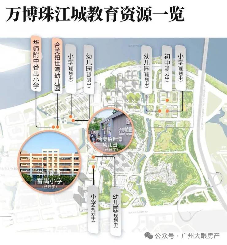 其中配置24班华师附中番禺小学及12班公立合美铂世湾幼儿园(已开学)