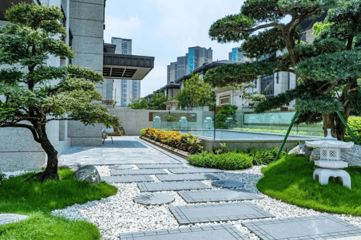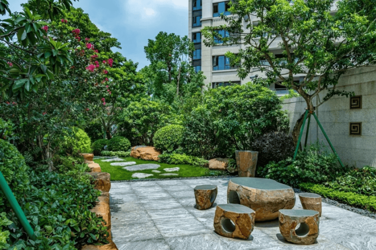 所有院墅楼层均是按照地上三层,地下一层修建,配备前后双花园,可以享受丰富的庭院生活。一层自带景观大花园,配置私家入户门楣,高墙院门,围合一方专属空间,自成一家之院。钟灵水秀,以院为界,彰显人生不同境界。院墅庭院采用岭南园林的造园手法,打造成一个中庭式花园。花园采取前庭后院的空间划分,前庭作为入户花园,引进罗汉松等各类名贵花草树木,尽显尊贵。