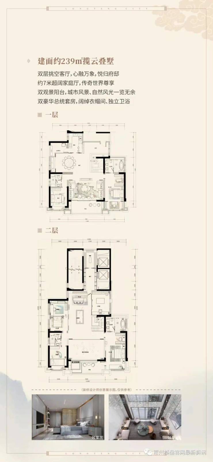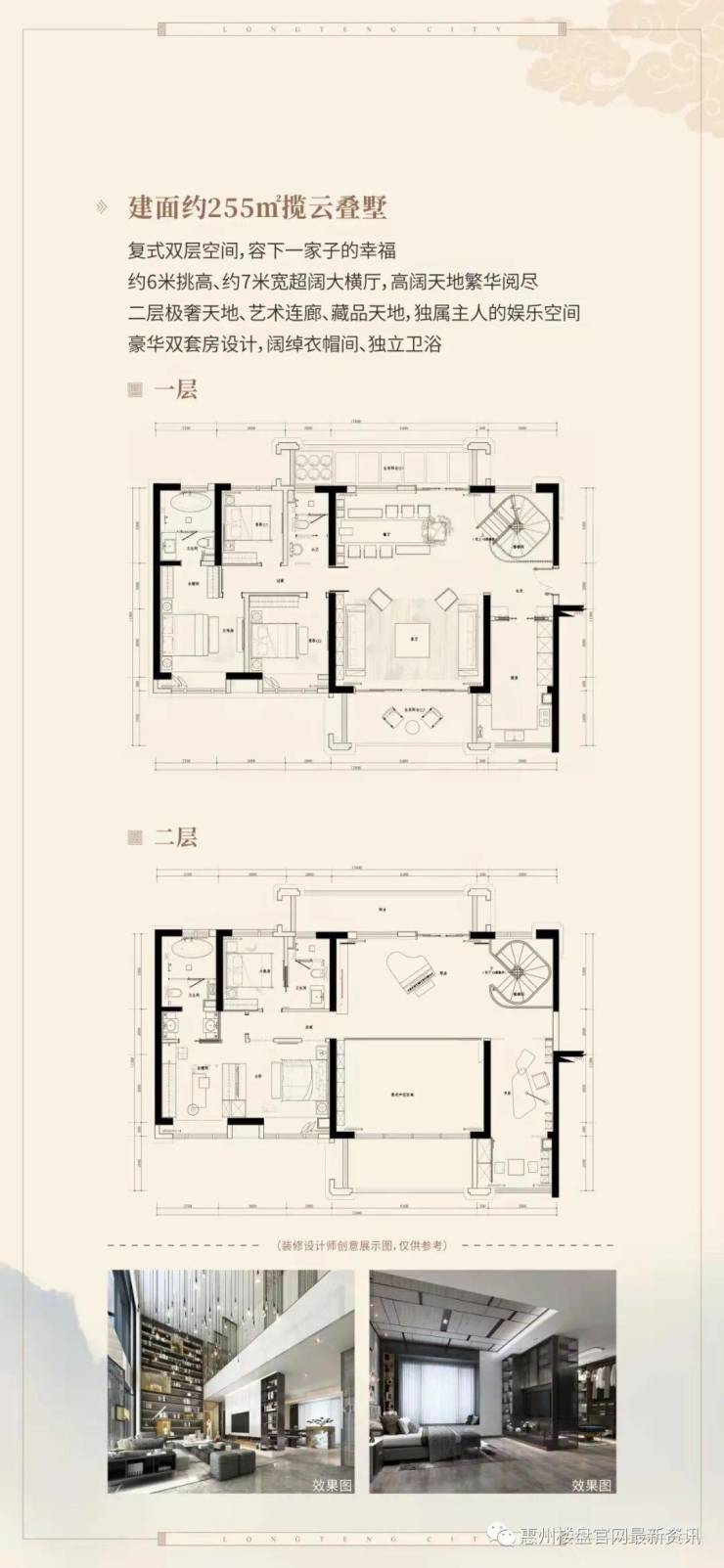 建面约440-837㎡国风院墅(总价约1000万-2500万/套),建面约239-255㎡揽云叠墅(总价约550万-600万/套),