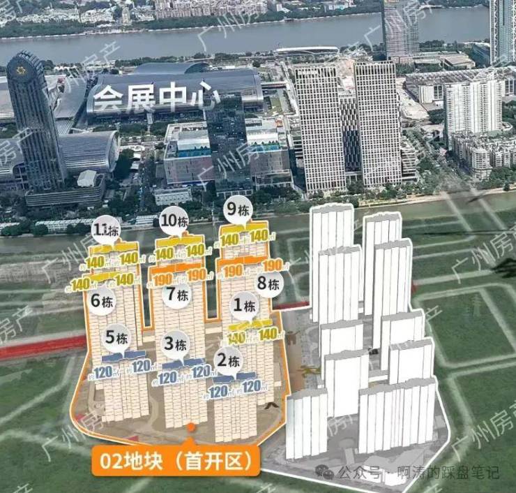 02地块规划了3个面积段,120-140-190平,都是南北对流双阳台四房。