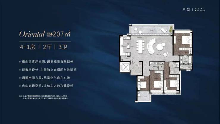235㎡四房两厅三卫:超宽观景阳台设计,适合追求高品质生活的大户型需求。