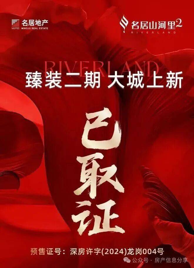 最新动态:2023年3月4日深圳龙岗名居山河里二期正式获批预售,已经交房准现楼,臻装三房折后均价3.55万起/平,2024年3月8日正式开盘!