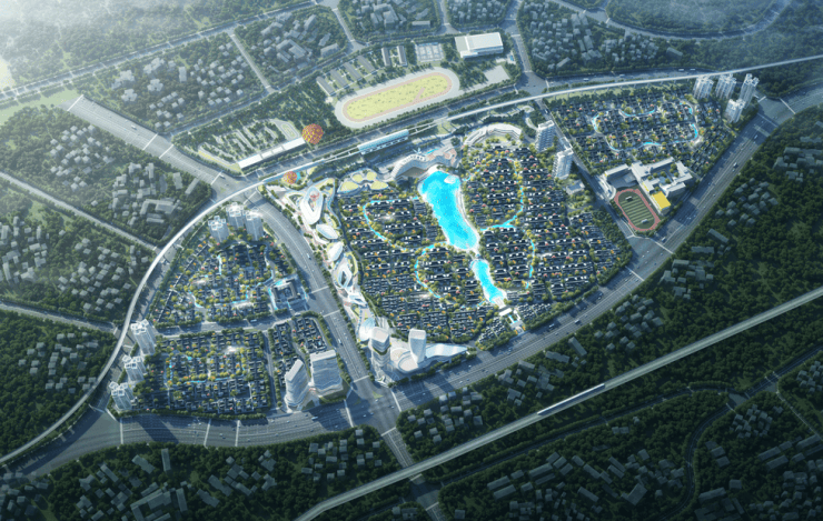项目建设了约7.6万㎡的城市综合配套中心,不仅规划有五星级度假酒店、蝴蝶之眼亲水餐厅等景区豪配设施,还引进度假别墅酒店及康养度假中心。
