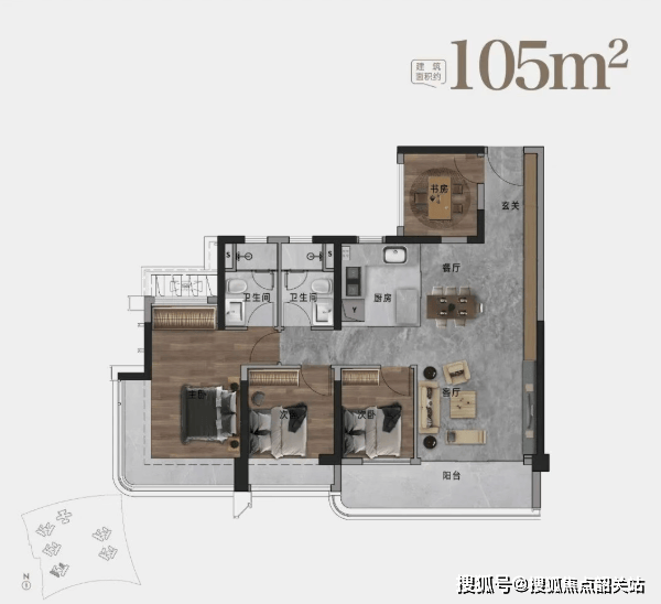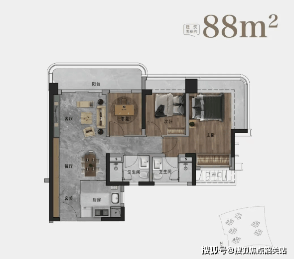 尤为难得的是,即便是最小的88㎡三房,也做到三开间朝南、主卧带大飘窗,书房虽紧凑但功能完整,完全满足刚需家庭需求。而105㎡及以上户型更实现四开间朝南,南向房间占比高达90%,采光通风堪称同级最优。