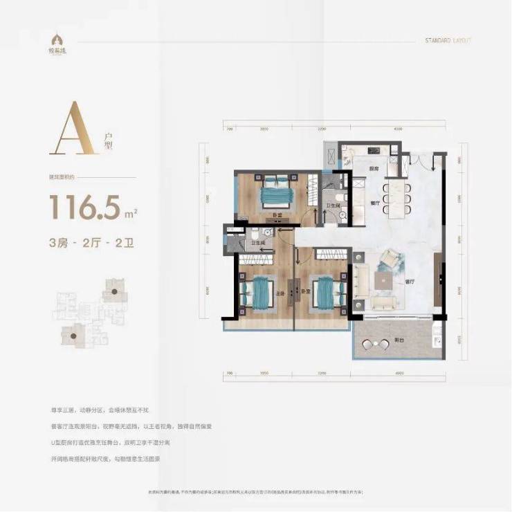 -116-146㎡三至四房:4.5米阔绰客厅,餐客独立分明,空间实用主义与仪式感并存。