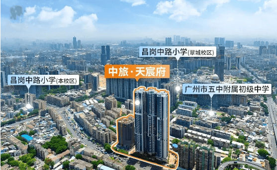 中旅天宸府落位海珠西核心板块,地处昌岗中路与宝岗大道交汇处,是百年央企中旅地产打造的改善型社区。项目以 “8 号线宝岗大道站 200 米(双地铁)、昌岗中路小学(省一级)直升五中、1:1.2 车位配比” 为核心优势,周边凯德乐峰、太古仓等商业成熟,南方医科大学珠江医院等医疗环绕,目前 ABC 栋为准现房、D 栋加推中,单价 4 字头起,成为注重教育与通勤的海珠老城置业者优选。