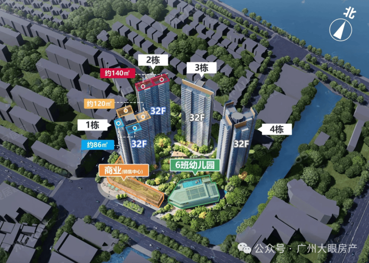 板楼(2-3栋)则为2梯2户,清一色为建面约142㎡户型