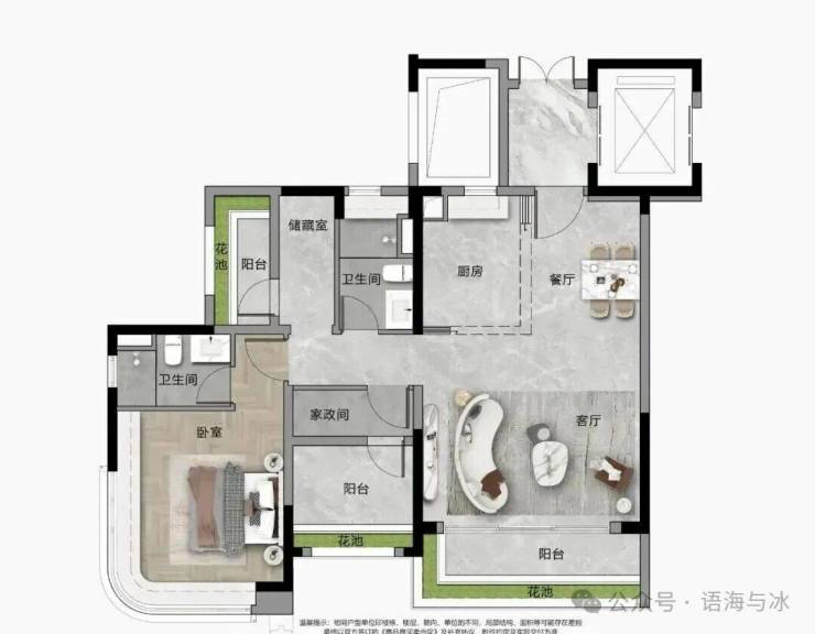 “宽幕视野” 南北通透双视野,主卧270°转角飘窗