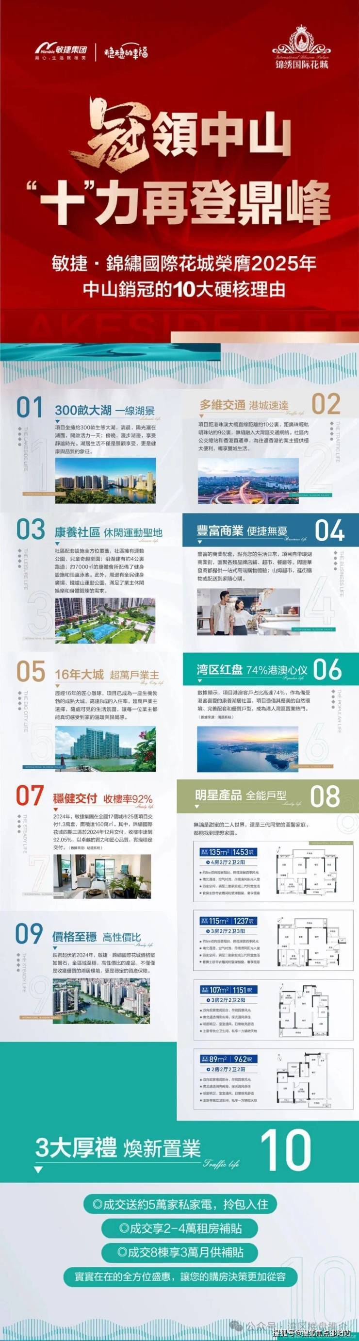 錦繡國際花城經過16年對湖居的打磨與沉澱,數據顯示,近五年港澳客置業區熱點城市中山以25%嘅比例,而花城近兩年港澳客占比高達78%,對比整個中珠遙遙領先;錦繡國際花城更是《含港量》爆表,交通、遊玩、配套都是港人心水之選。灣區置業,當然選錦繡國際花城!