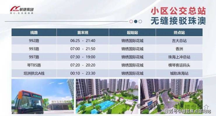 社區內有公交總站,接駁珠海;項目距港珠澳大橋直線距離僅約10公里;距廣珠輕軌明珠站約9公里;家門口的快線——坦洲快線第一段工程已完工並通車,實現10分鐘達中山市區,;寶珠北路正式動工(林東小學至錦繡國際花城路段;錦繡國際花城多維立體交通,實現無障礙接駁中珠港澳,是大灣區西最核心的發展圈。