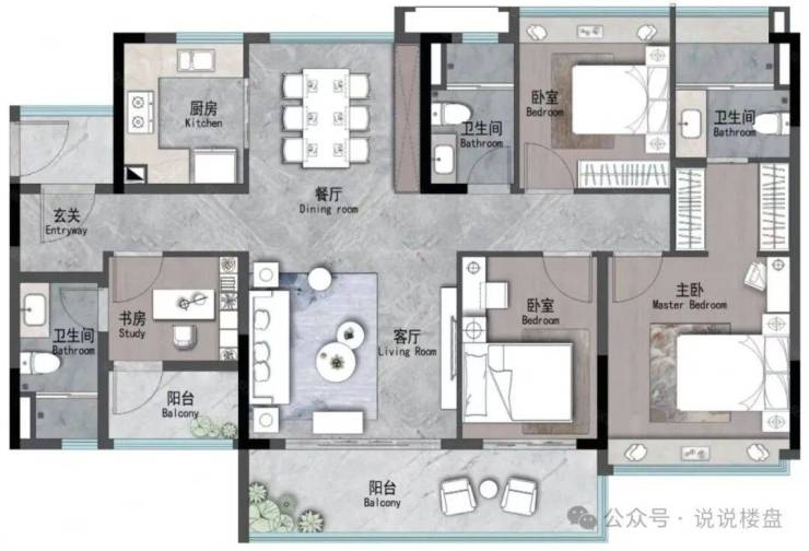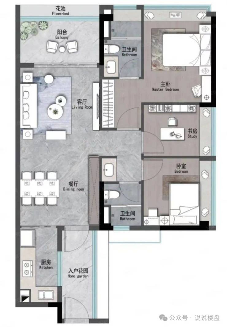 140㎡四房两厅,南北对流竖厅,专为改善家庭而来,不仅做到四开间朝南,而且有3个卧室朝南。