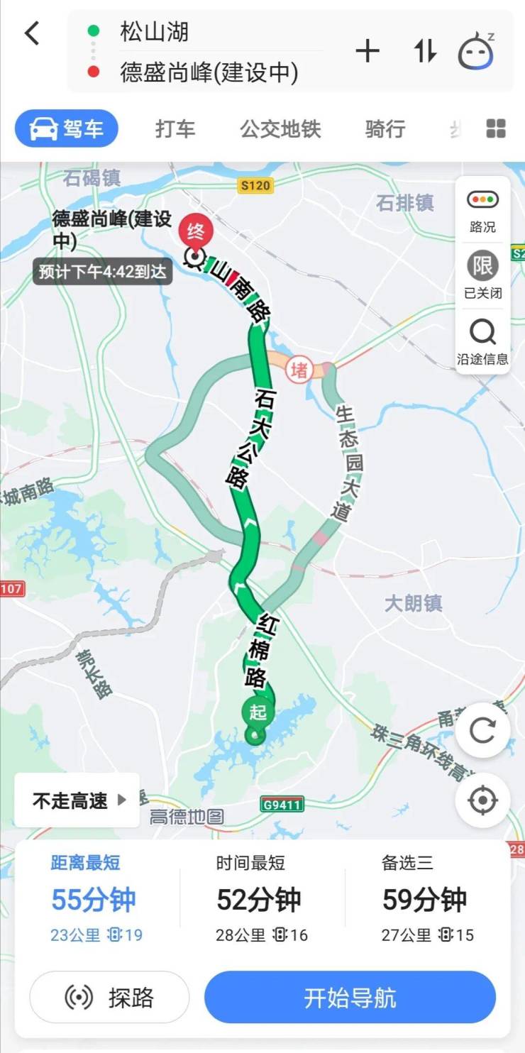 另外,如果在松山湖出发,沿着红棉路进入石大公路,行程大约23公里,从高德地图测算,大约需要50分钟时间。