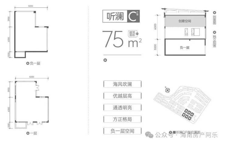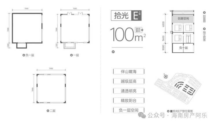 举架5.9米,买1层送1层,建面约80㎡,实得160㎡,赠送80㎡露台