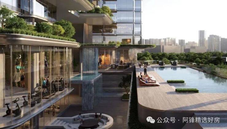 ④社区打造有中央大园林、多功能泛会所,标配泳池、健身房、棋牌室、儿童乐园等;设计了专属天桥系统,业主下楼,可通过天桥连廊走去太古里。