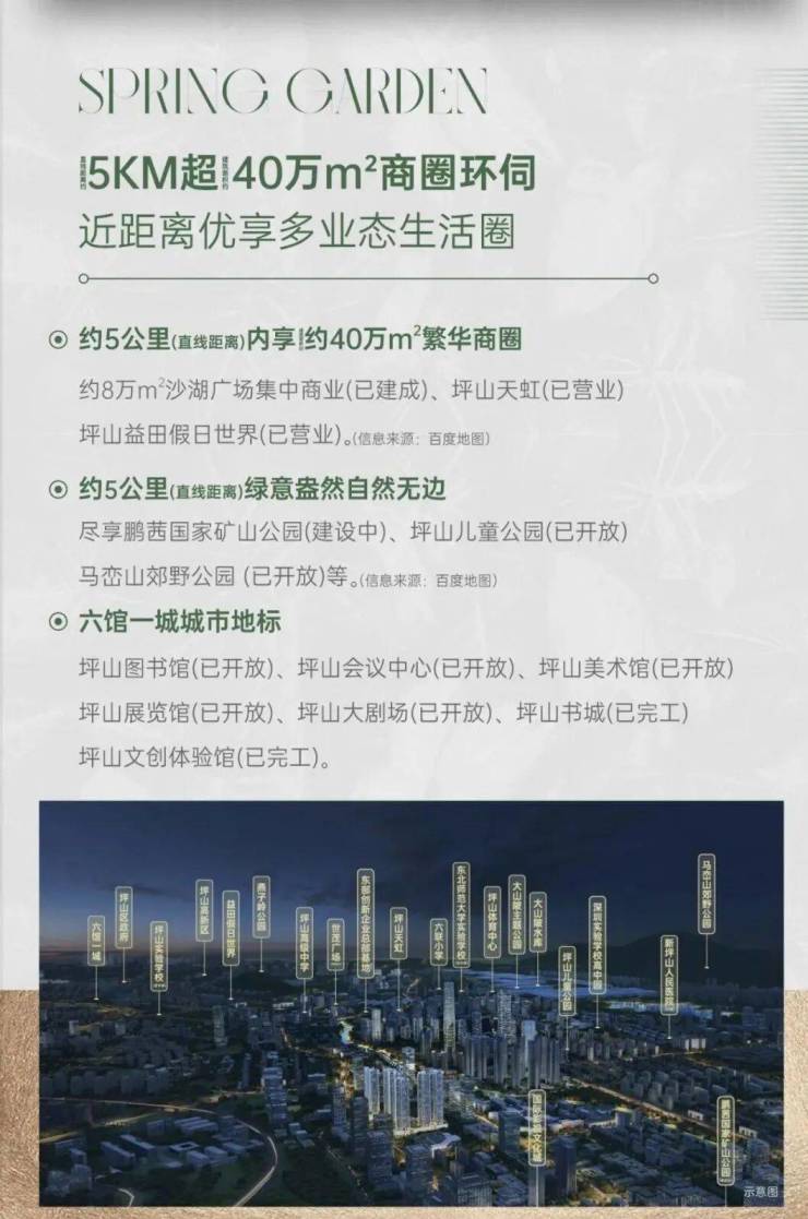 约5公里范围内还有坪山首座万象城(在建),也是继罗湖,南山万象城之后的深圳第三座万象城,据坪山土地整备局回复称,力争在2025年建成。