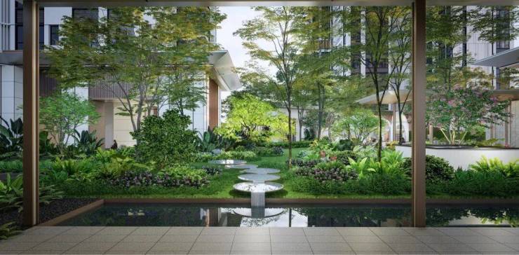 英式奇趣花园内精心设计林荫缤纷感、品质迎宾感、轻氧森系感、感知参与感、尊享芳香感多重景致花园。