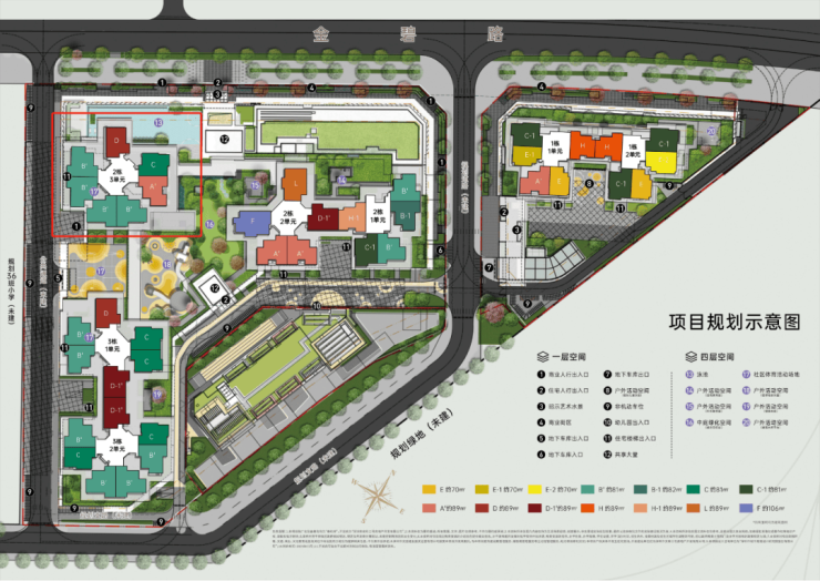 01地块:总占地面积约0.51万㎡,总建筑面积约5.16万㎡,计容建筑面积约3.53万㎡,容积率6.32,绿化率30%,共由2栋40层高住宅组成,其中分别是1栋1单元及1栋2单元。总规划340户,2梯5户设计,地下室有4层,规划339个车位,车位比1:1。