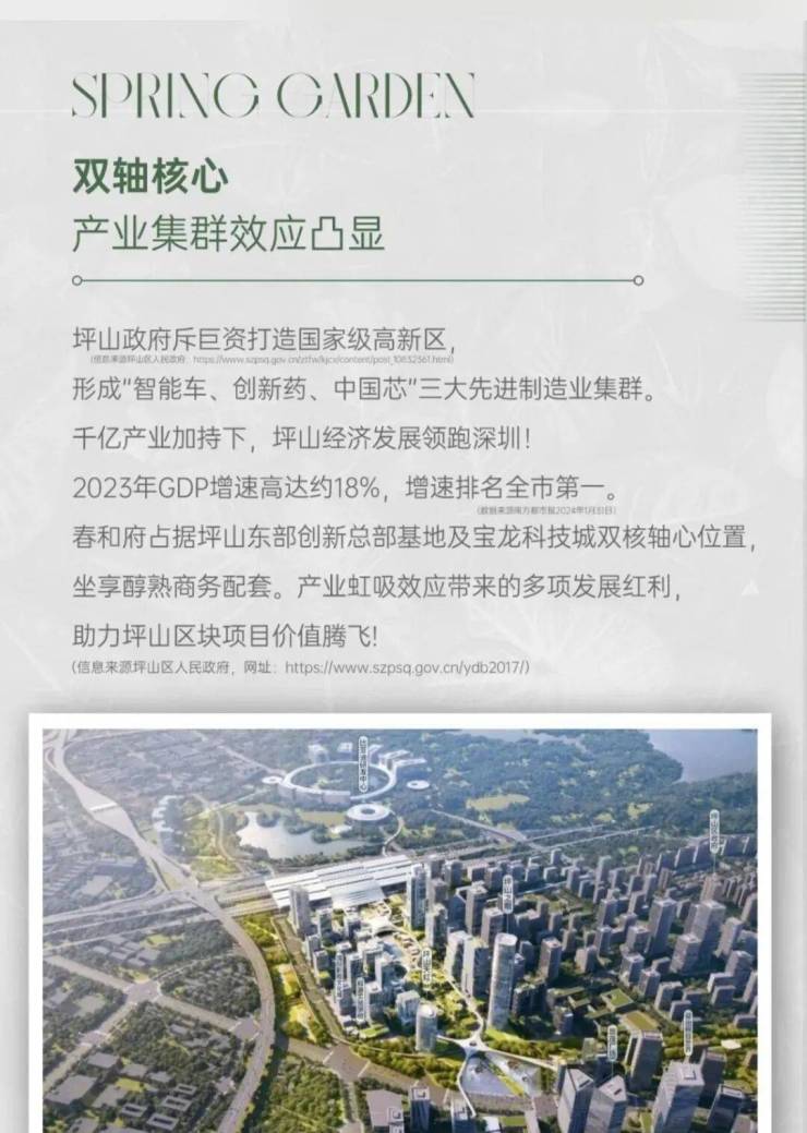 春和府,位于坪山区坪山街道六联社区金碧路与沙湖路交汇处东南侧,地处沙湖板块,坪山在近年来发展迅速,主要发展新能源与智能网联汽车产业、新一代信息技术及智能制造产业、生物医药产业等经济,在2023年重点企业产值高达3344亿元,同比增长59.2%。