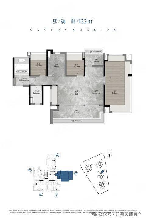 项目规划了4栋住宅,做成蝶式布局,预计住户约1000户。产品规划也是新规后的户型,阳台占比可达到套内面积的20%,虽然没有南方面粉厂地块30%的高,但放在海珠西,这也是板块使用率最高的项目。