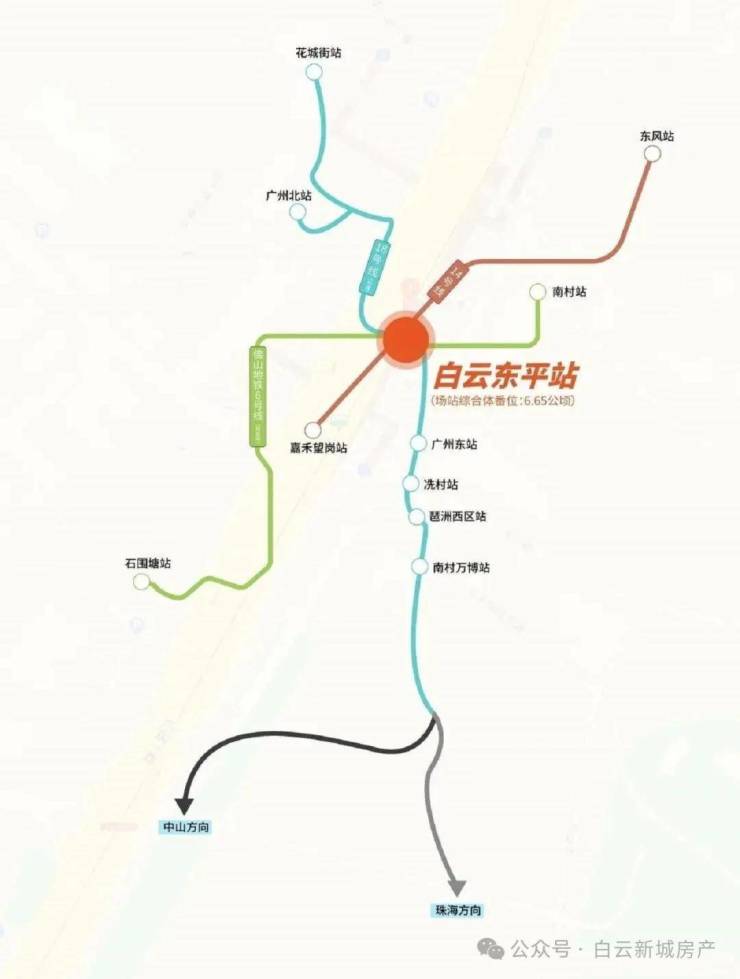 联通广佛城际交通,自白云东平站连接大沥、桂城、陈村、佛山新城等板块,串联广佛实现同城联动。